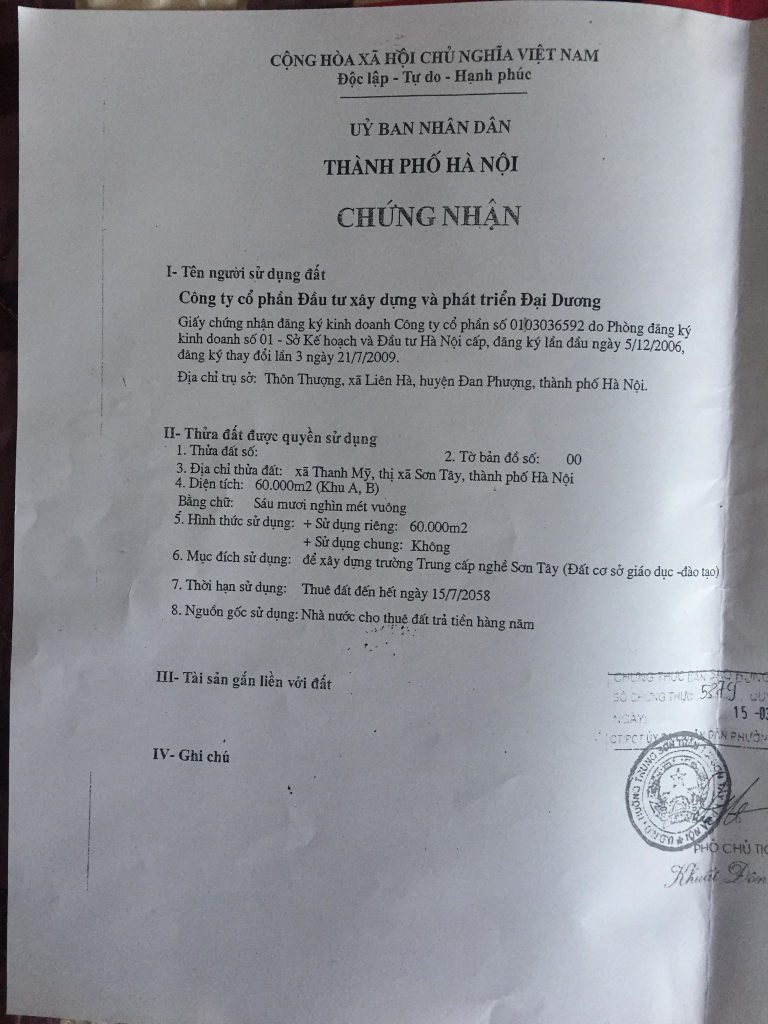 Cần bán lô đất 6ha tại trung tâm thị xã Sơn Tây, thành phố Hà Nội.